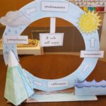 Attraverso il diagramma del ciclo dell’acqua e grazie alle illustrazioni di un bellissimo libro, i bambini hanno appreso le varie fasi degli stati dell’acqua: non c’è un inizio o una fine, le molecole d’acqua si muovono continuamente.