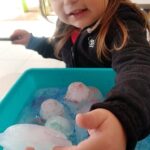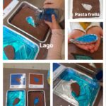 I più piccoli del nido hanno toccato con mano uno degli stati dell’acqua, ovvero la solidificazione in ghiaccio, contestualizzandolo in un habitat polare, creato e colorato interamente da loro: un’esperienza sensoriale a 360° che ha permesso loro di allenare la motricità del polso e la coordinazione oculo-manuale.